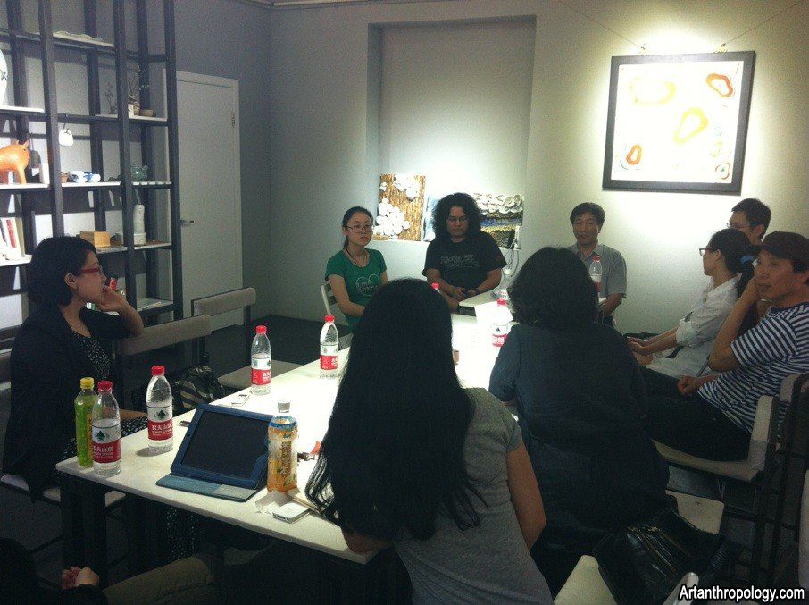 2013年6月17日下午,我中心“都市人類學(xué)考察”課題組成員在798藝術(shù)區(qū)召開了第三次調(diào)研會議。此次會議邀請了高氏兄弟、李向群工作室的呂文靜、原時態(tài)空間主人徐勇、大河畫廊、罐子書屋等藝術(shù)機(jī)構(gòu)的藝術(shù)家、策展人、管理者,從藝術(shù)家及藝術(shù)機(jī)構(gòu)的角度,對藝術(shù)家的生存狀態(tài)、798藝術(shù)區(qū)的現(xiàn)狀以及未來走向進(jìn)行了深入的交流。