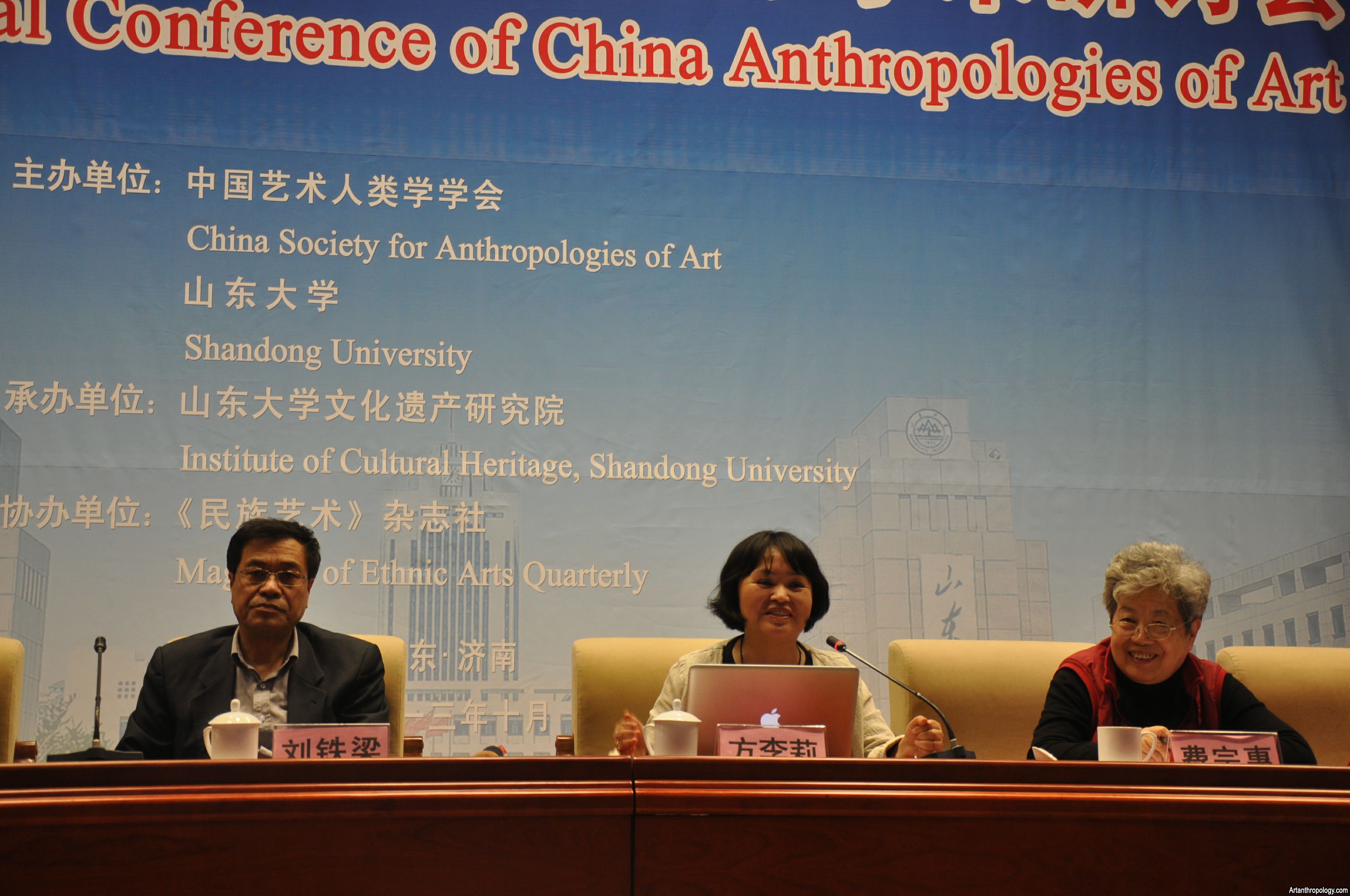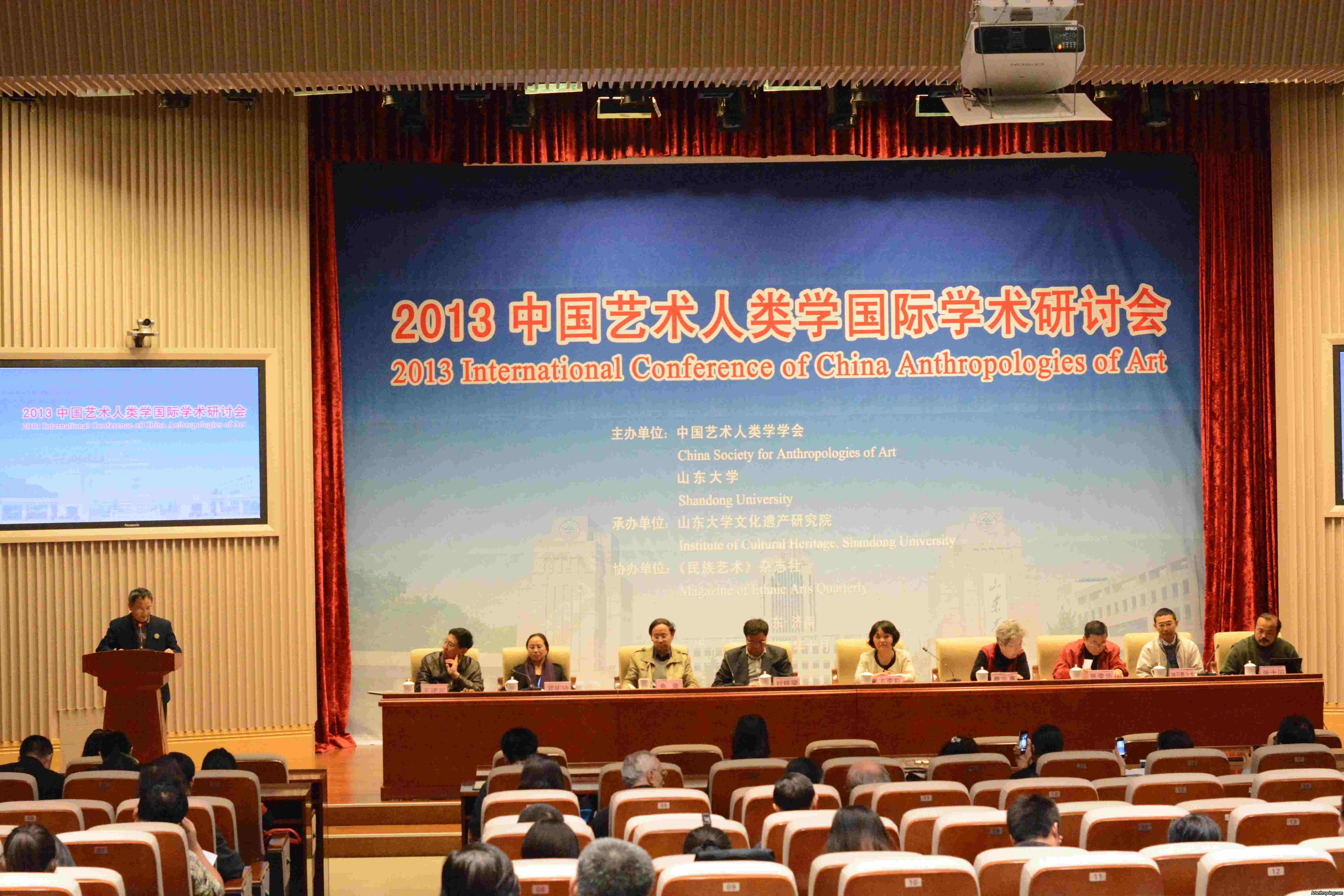 2013年10月25日,由中國藝術(shù)人類學(xué)學(xué)會、中國藝術(shù)研究院、山東大學(xué)共同主辦,山東大學(xué)文化遺產(chǎn)學(xué)院和中國藝術(shù)研究院藝術(shù)人類學(xué)研究所承辦,《民族藝術(shù)》雜志社協(xié)辦的“2013中國藝術(shù)人類學(xué)國際學(xué)術(shù)研討會”在山東省濟(jì)南市隆重開幕。費(fèi)孝通先生的女兒費(fèi)宗惠女士、女婿兼生前秘書張榮華先生、中國藝術(shù)人類學(xué)學(xué)會會長方李莉、山東大學(xué)文化遺產(chǎn)研究院院長方暉、山東省社會科學(xué)界聯(lián)合會副主席劉德龍出席本次會議開幕式并先后致辭,中國藝術(shù)人類學(xué)學(xué)會副會長周星、色音、納日碧力戈、鄧佑玲、廖明君、張士閃以及來自國內(nèi)外的130余位藝術(shù)人類學(xué)領(lǐng)域的專家、學(xué)者參加了開幕式。開幕式由中國藝術(shù)人類學(xué)學(xué)會副會長、山東大學(xué)文化遺產(chǎn)研究院副院長張士閃主持。