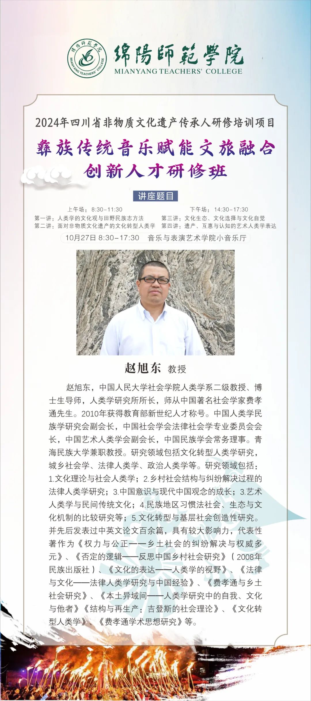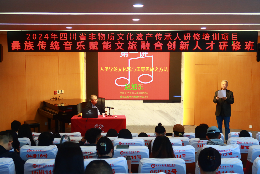 10月27日,“第一屆(2024)藝術(shù)民族志田野工作坊”第四日學(xué)習活動在綿陽師范學(xué)院音樂與表演藝術(shù)學(xué)院小音樂廳隆重舉辦。本日活動的學(xué)術(shù)講座主講人趙旭東教授系中國人民大學(xué)社會學(xué)院人類學(xué)系二級教授、博士生導(dǎo)師,人類學(xué)研究所所長,師從中國著名社會學(xué)家費孝通先生。2010年獲得教育部新世紀人才稱號。中國人類學(xué)民族學(xué)研究會副會長,中國社會學(xué)會法律社會學(xué)專業(yè)委員會會長,中國藝術(shù)人類學(xué)會副會長,中國民族學(xué)會常務(wù)理事,青海民族大學(xué)兼職教授。