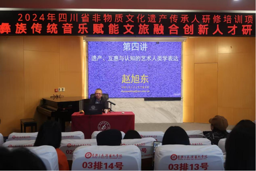 第一屆(2024)藝術(shù)民族志田野工作坊"由中國藝術(shù)人類學(xué)學(xué)會與綿陽師范學(xué)院聯(lián)合主辦、綿陽師范學(xué)院音樂與表演藝術(shù)學(xué)院承辦,由四川少數(shù)民族音樂文化研究中心、四川青少年美育研究中心等單位協(xié)辦,以“從實求知"為主題,旨在探討藝術(shù)學(xué)與人類學(xué)的前沿理論,分享田野工作經(jīng)驗。10月27日,由綿陽師范學(xué)院音樂與表演藝術(shù)學(xué)院楊永國副院長主持,趙旭東教授為參加工作坊的學(xué)員帶來了四場精彩的講座。