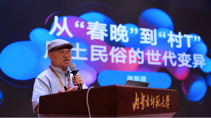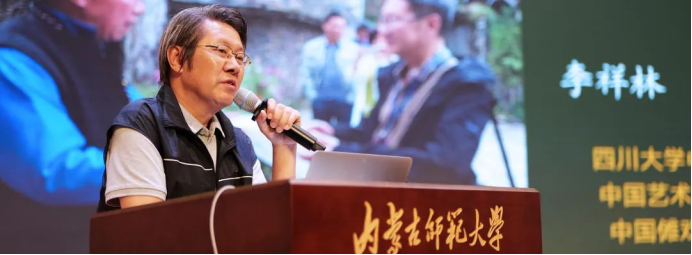 下午的主題發(fā)言分為上半場和下半場,上半場由內(nèi)蒙古師范大學(xué)教授包鳳蘭主持,東南大學(xué)特聘首席教授方李莉進(jìn)行評(píng)議。內(nèi)蒙古師范大學(xué)教授納日碧力戈、中國人民大學(xué)教授趙旭東、四川大學(xué)徐新建、山東大學(xué)教授張士閃,分別以《藝術(shù)人類學(xué)的指號(hào)面向》《藝術(shù)的一般人類學(xué)考察》《從“春晚”到“村T”:風(fēng)土民俗的時(shí)代轉(zhuǎn)型》《功能導(dǎo)向與文藝發(fā)揮:黔東南瑤白村擺古節(jié)儀式考察》(線上)為題進(jìn)行了報(bào)告。