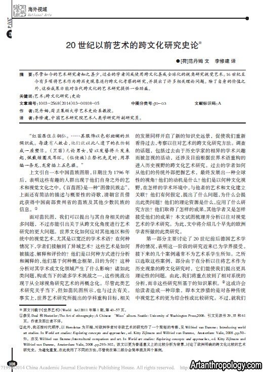 20世紀(jì)以前藝術(shù)的跨文化研究史論(范丹姆文,李修建譯),發(fā)表于《民族藝術(shù)》2014年第3期。