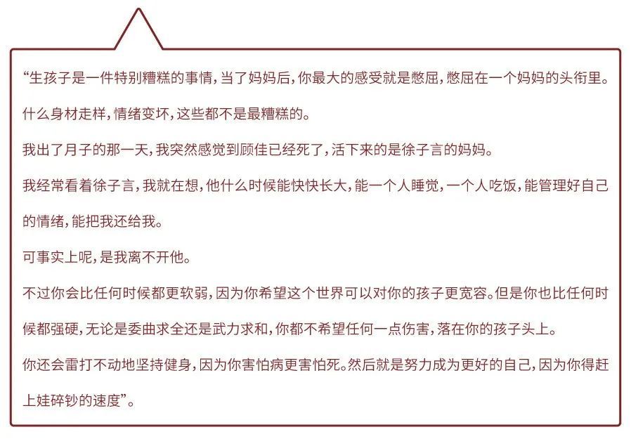 人生不是童話。王子公主幸福的生活在一起之后,還會(huì)有柴米油鹽的日常,畢業(yè)、工作、結(jié)婚、生子,并不只是“打了卡”就結(jié)束了 。每一個(gè)都是一個(gè)全新責(zé)任,需要自己去經(jīng)營(yíng)、去面對(duì)。特別是成為母親之后,要負(fù)擔(dān)起的不僅僅是一個(gè)人的溫飽,還要去幫助寶貝認(rèn)識(shí)世界。站在 30+ 歲的年紀(jì),不管以前你多么剛毅,只要你一成為母親,寶貝就是你的軟肋,你時(shí)刻關(guān)注寶寶喜歡什么,不喜歡什么,特別是寶寶不愛(ài)吃飯的時(shí)候,會(huì)更加不安、緊張、焦慮、迷茫。