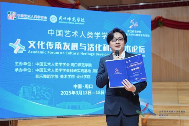 2025年3月14日,由中國藝術人類學學會與周口師范學院主辦,中國藝術人類學學會科研實踐基地、周口師范學院藝術人類學研究中心、周口師范大學、美術學院、設計學院承辦的中國藝術人類學學會“文化傳承發(fā)展與活化利用”高端學術論壇在周口師范學院閔惠芬音樂廳盛大開幕。周口師范大學校長張寶強教授、東南大學藝術學院方李莉教授、中國傳媒大學藝術研究院王廷信教授、中央民族大學民族學與社會學學院王建民教授、中央音樂學院音樂學系楊民康研究員、中國藝術人類學學會張喆副會長和來自全國各地藝術人類學及相關學科領域的100余位專家、學者出席了本次會議的開幕式。開幕式由周口師范學院音樂舞蹈學院院長范明磊教授主持。