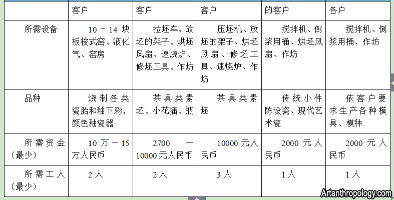 從以上表格中,我們可以看到,在樊家井仿古村,不僅恢復(fù)了明清以來在景德鎮(zhèn)所形成的作坊分工合作制,而且我們還看到這種手工藝作坊需要的資金少,人員少,所以只要有一點(diǎn)手工生產(chǎn)技術(shù)就很容易產(chǎn)生。