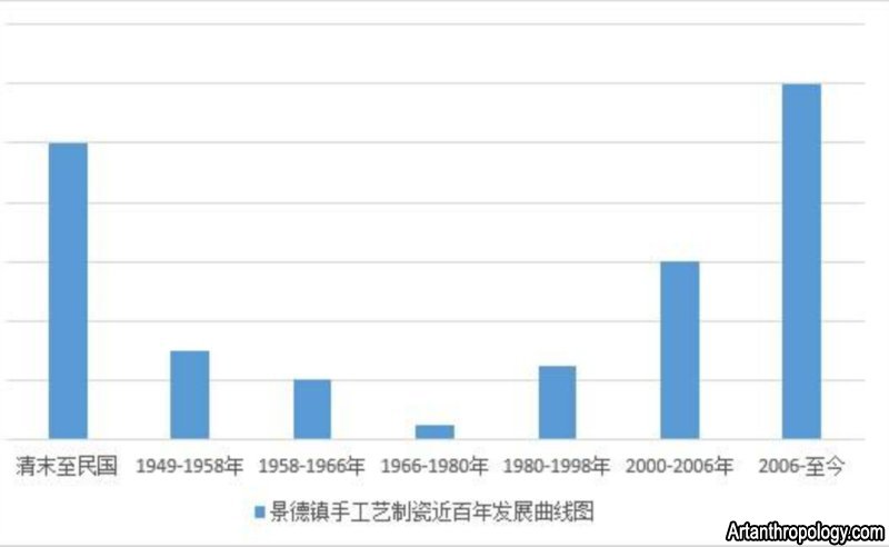 以下是筆者畫近百年景德鎮(zhèn)陶瓷手工藝發(fā)展的曲線圖: